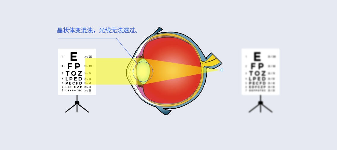 晶状体变混浊,视物模糊,有雾蒙蒙的感觉。
